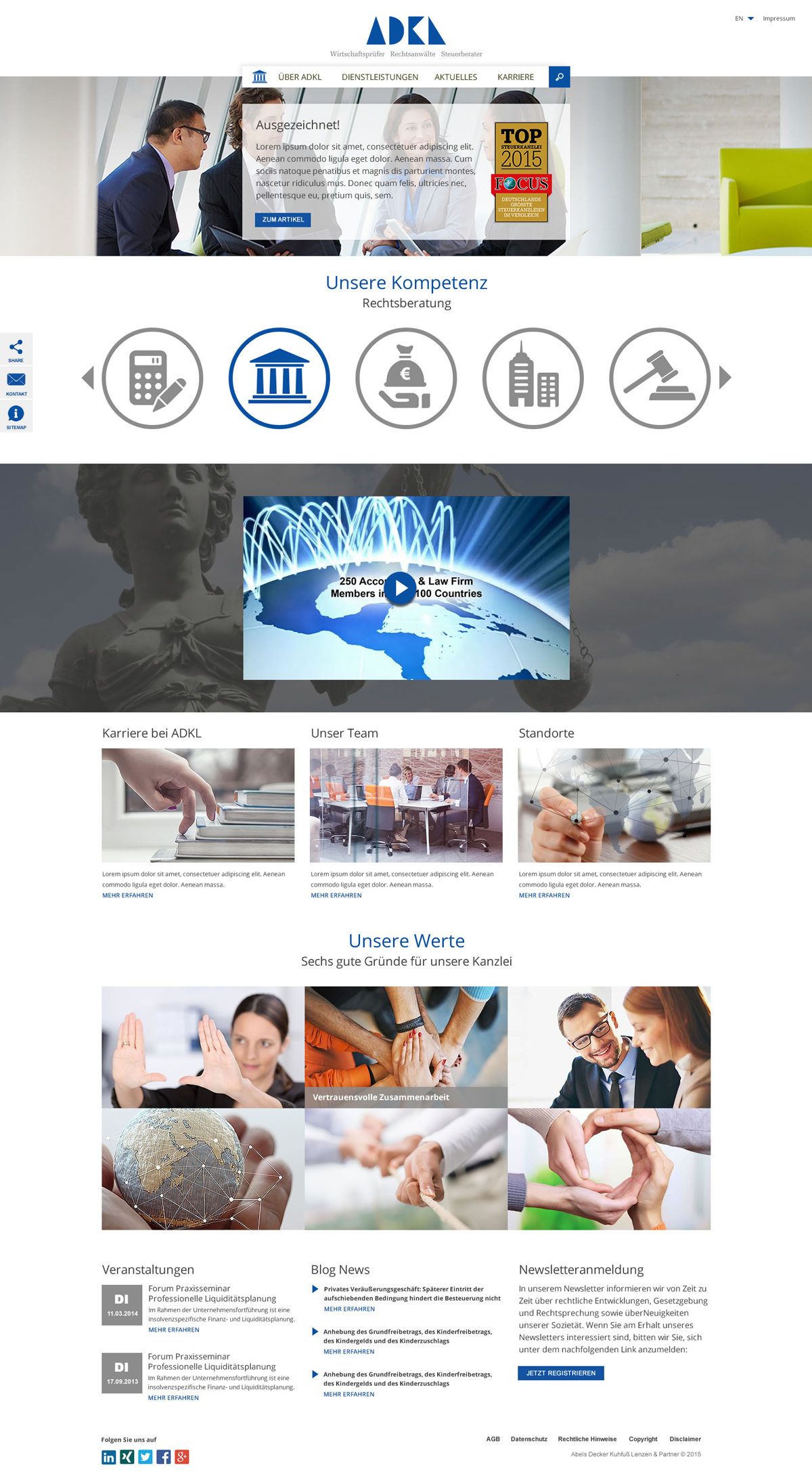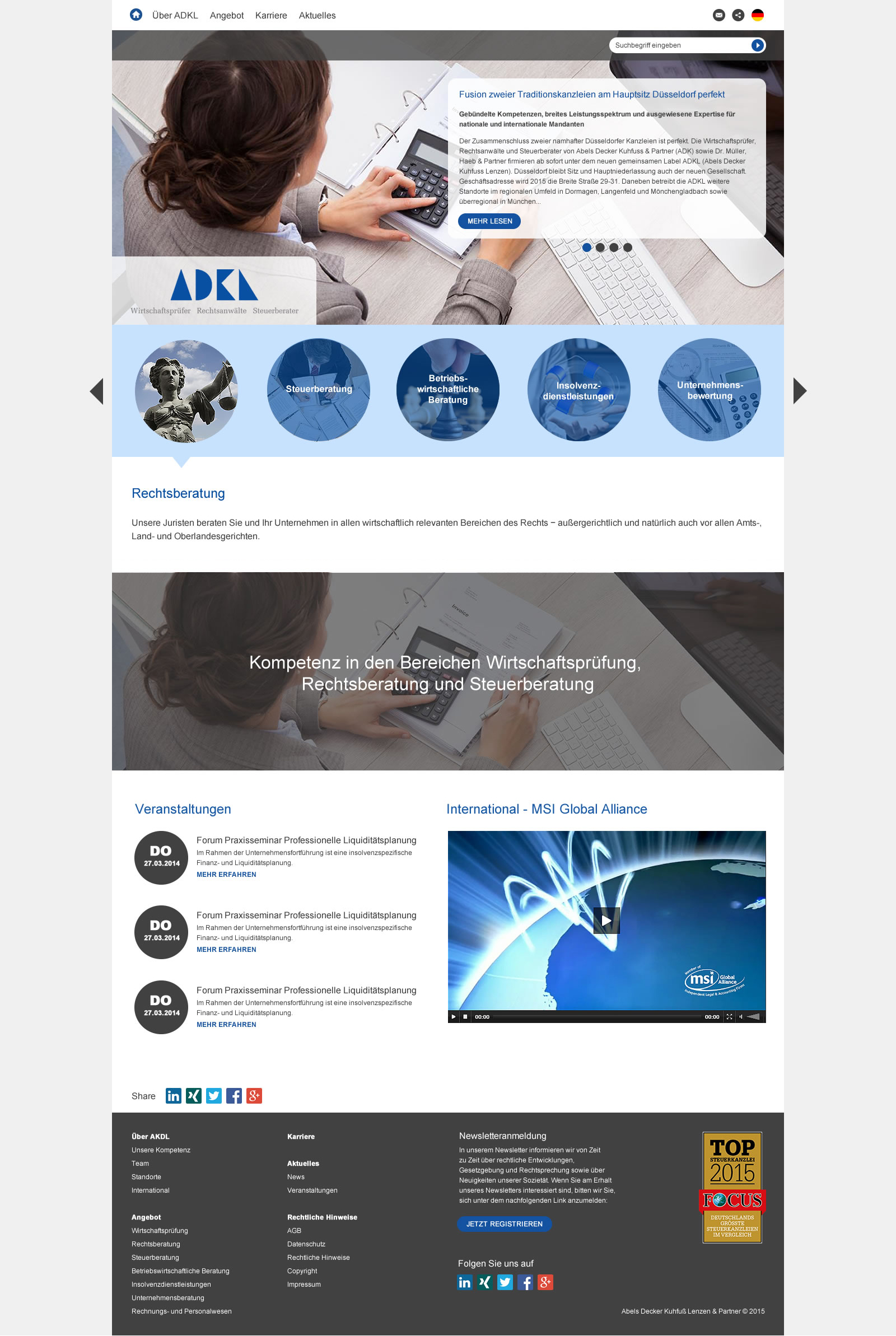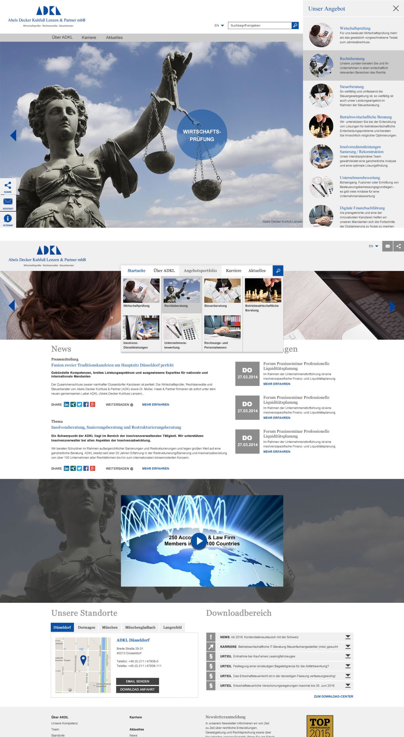 Aufbauend auf dem positiven Feedback zum Relaunch der picturemaxx Corporate Website und dem anschließenden Projekt für die Anwaltskanzlei Lutz | Abel fragte auch die Wirtschaftsprüferkanzlei ADKL aus Düsseldorf eine Überarbeitung ihres Internetauftritts an.